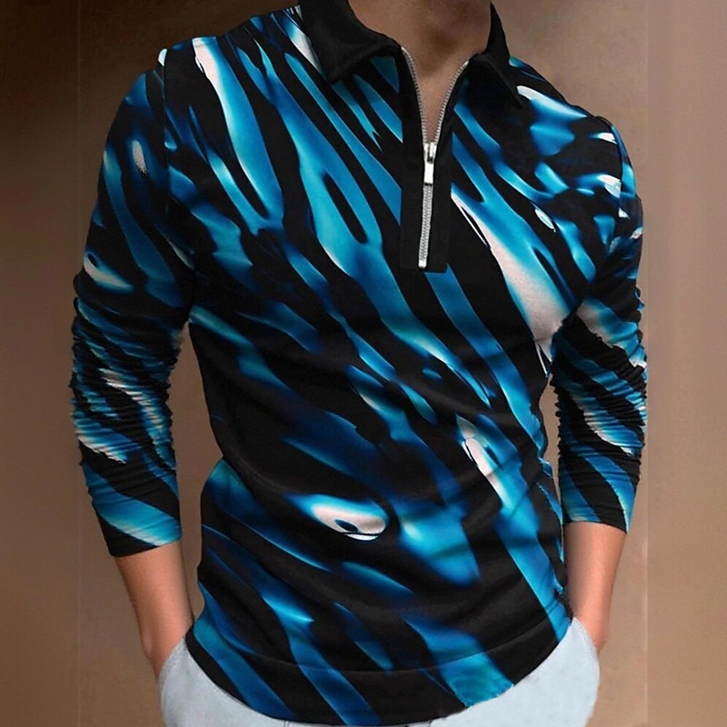 Men's Geometric Line Golf Shirt Long Sleeve Polo Shirts Collared Shirts Casual Business Casual Street Athleisure Outdoor clothing Holiday Buttons 3D Print Spring Fall Winter White Red Blue