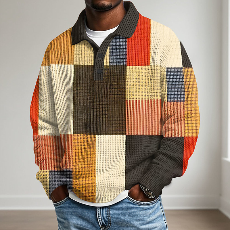 Men's Graphic Waffle Polo Shirts Golf Shirt Short Sleeve Polo Shirts Collared Shirts Casual Vacation Wear Rave Wear Party Outfits Buttons 3D Print Blue-Green Yellow Red