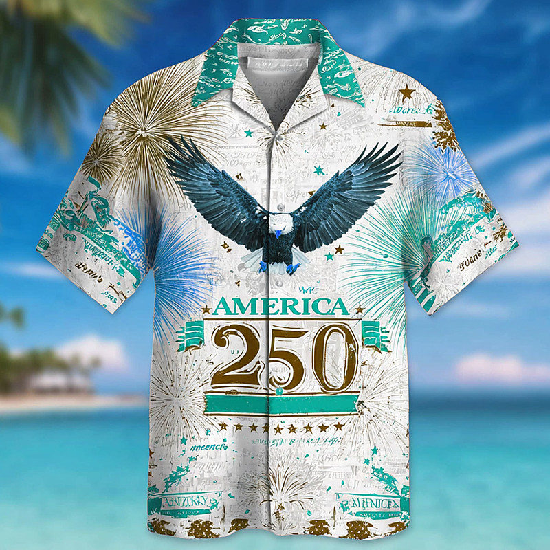 Men's Eagle Fireworks America's 250th Anniversary Shirt Button Up Shirt Short Sleeve Vintage Retro Outdoor Holiday Summer Spring Turndown 3D Print Collared Shirts Red Green