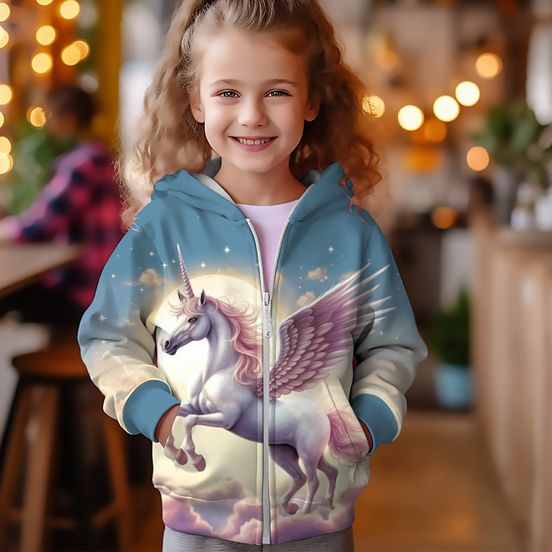 Girls' 3D Horse Hoodie Coat Outerwear Long Sleeve 3D Print Fall Winter Active Fashion Cute Polyester Kids 3-12 Years Outdoor Casual Daily Regular Fit