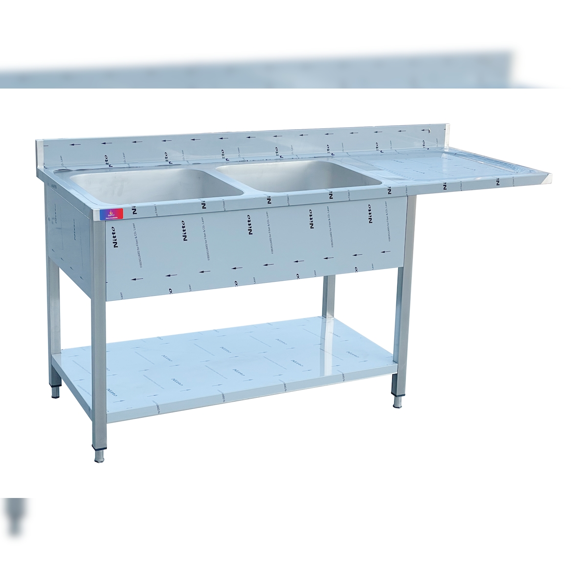 Gasfrit – Spülbecken Industriespüle aus Edelstahl mit 2 Becken, 1 Abtropffläche und Spülmaschinenloch 1600 x 700 x 850 + 100 mm