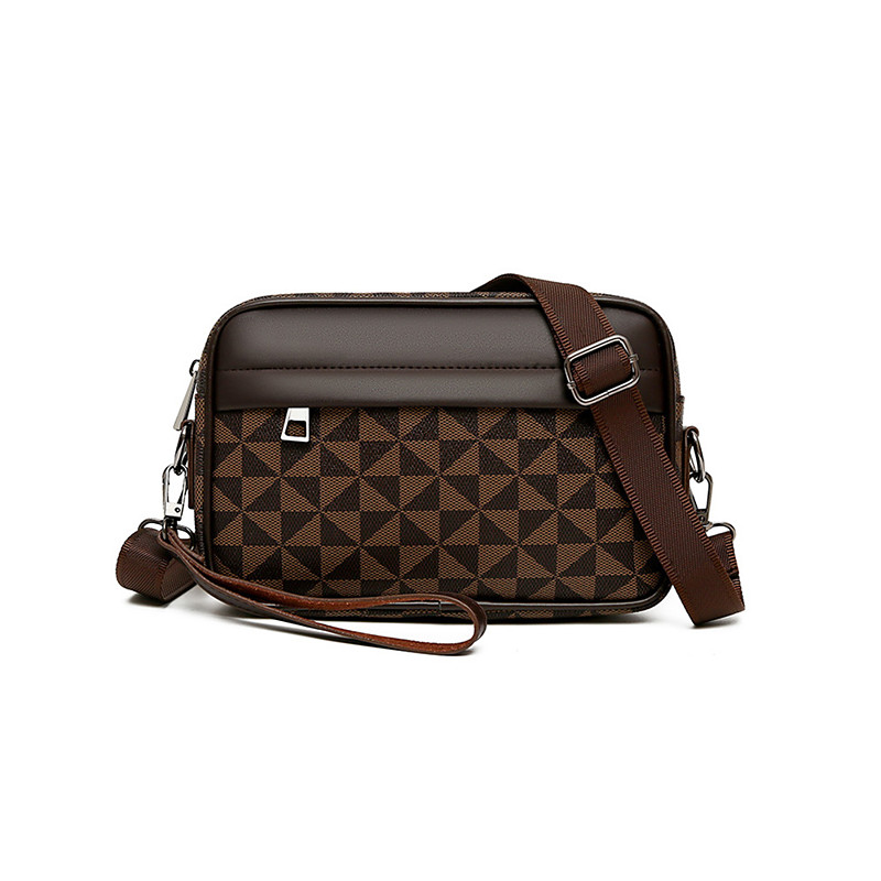 Men's Brown Faux Leather Crossbody Sling Bag – Vintage Chest Shoulder Pack with Adjustable Strap and Multiple Zipper Pockets for Travel, Outdoor and Daily Casual Wear