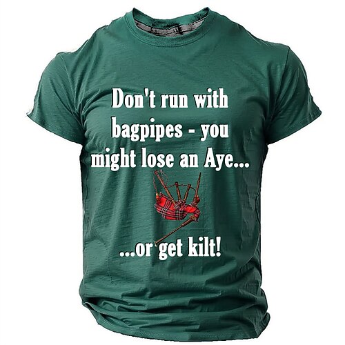 San Patrizio Per uomo Grafico Trifoglio Non correre con la cornamusa: potresti perdere un Aye o prendere un Kilt Irlandese fortunato Maglietta Manica Corta maglietta Stampa 3D Girocollo Camicia