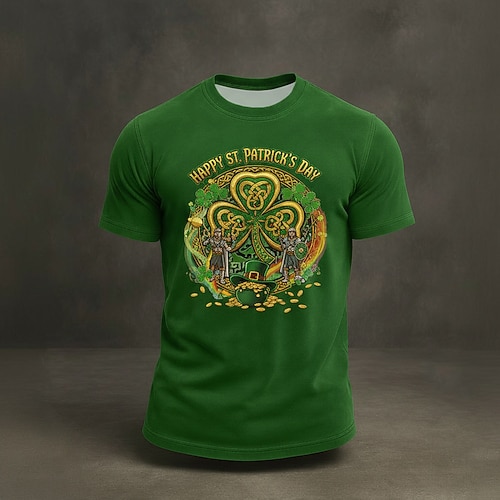San Patrizio Per uomo Trifoglio Irlandese fortunato Maglietta Manica Corta maglietta Stampa 3D Girocollo Camicia Designer Casual Feste Ferie Club Nero Rosso Verde Estate Primavera Abbigliamento S M L