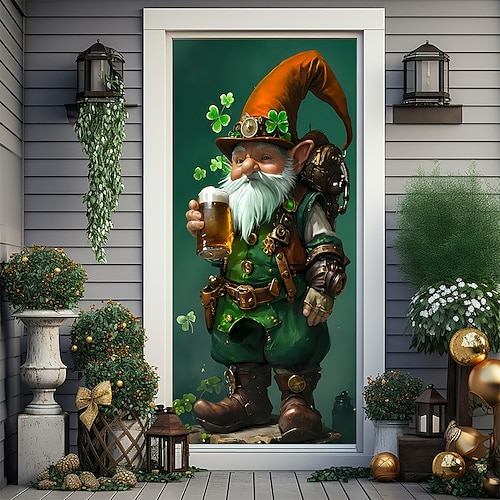 Festa di San Patrizio Poster Copertura della porta Banner per esterni Cappello verde Trifoglio Carino 3D Da serata Dormitorio Stanza per adolescenti Dormitorio universitario Ragazzi Man Cave Frat