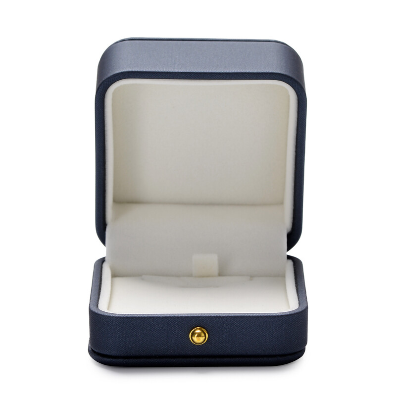 Boîte de pendentif en acier bleu métallisé Oirlv Luxe Cuir Premium Étui de bijoux pour l'engagement, le mariage, la demande en mariage, boîte de rangement de bague nuptiale avec bouton-poussoir métallique