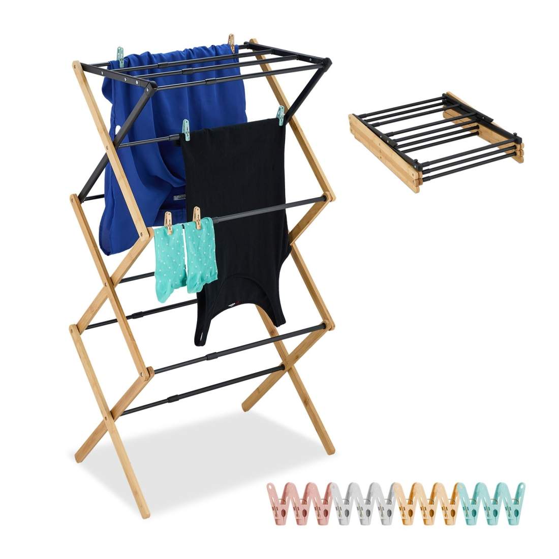 Sammenleggbar kleslufter – plassbesparende tørkestativ for bambus og metall