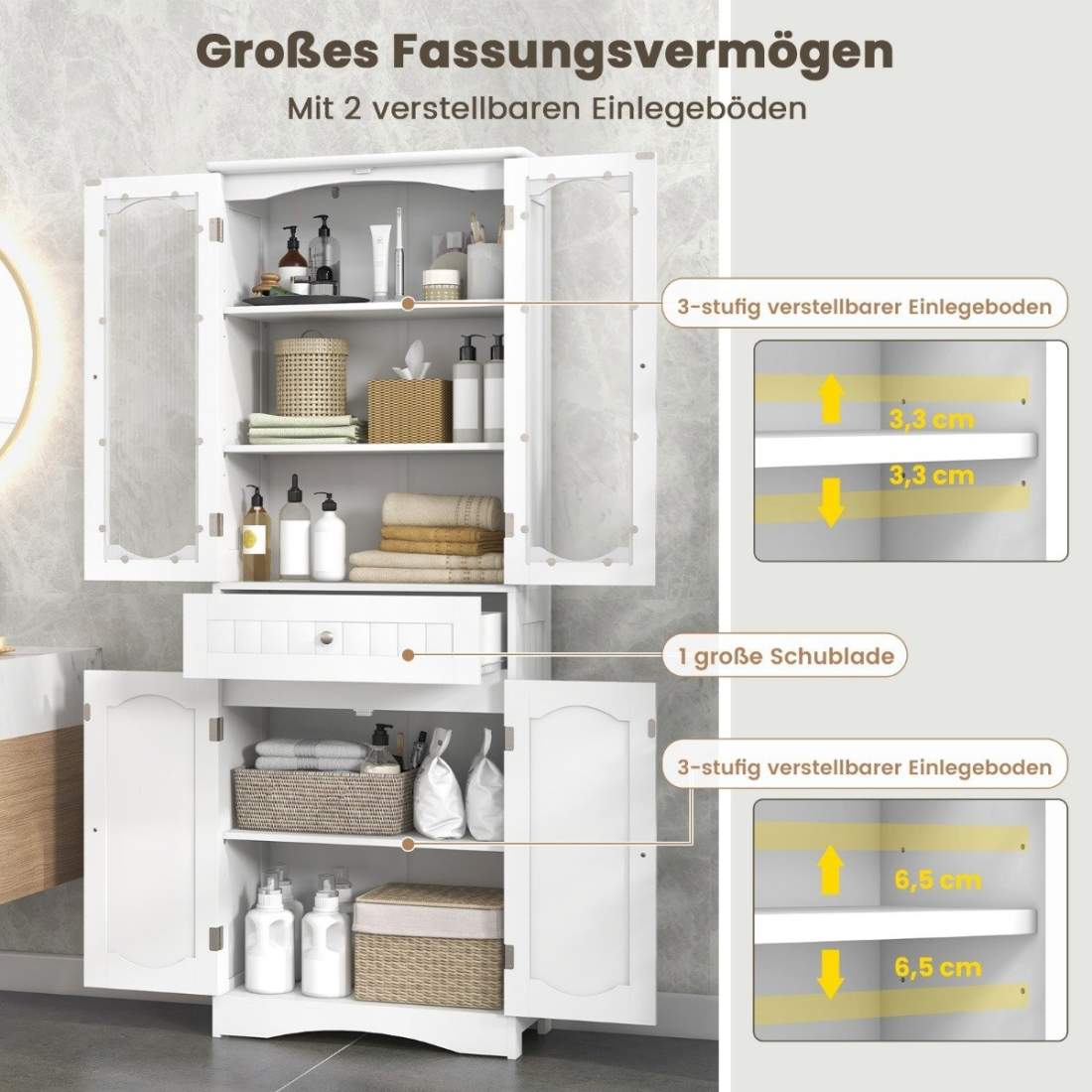 Badeværelsesskab med glaslåger – Justerbare hylder, 160 cm