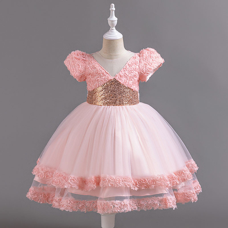 Kids Girls' Party Dress Graphic Flower Sleeveless Special Occasion Princess Polyester Party Dress Summer Spring 4 years Multicolor Champagne Pink