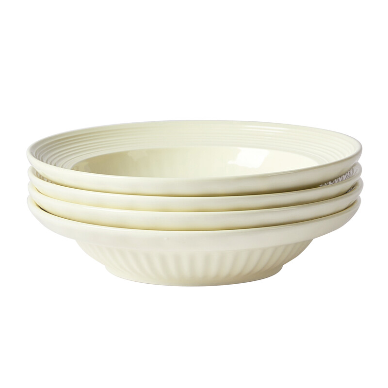 Assiette à Soupe Jiwoo Light Stream 20 cm Émail Brillant Beige - Lot de 4 Pièces