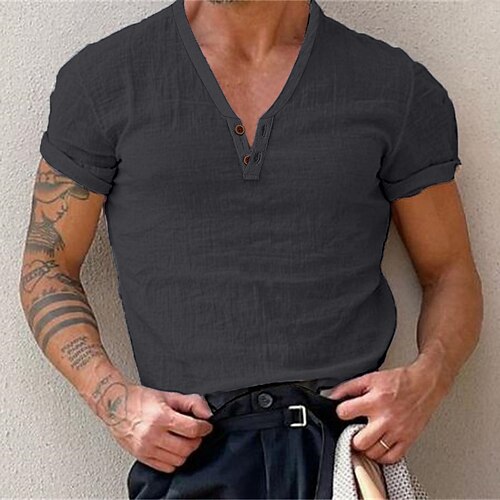 Herren T Shirt Henley Hemd Kurzarm Einfach Mode Lässig Bequem Button-Down Henley Straße Ferien Strand Frühling Sommer Schwarz Weiß Blau Henley T-Shirt