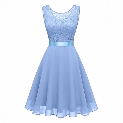 Elegante Anni 1950 Midi Vestito Senza maniche Pizzo Linea ad A Girocollo Costume Per donna Casuale Feste Abbigliamento Quotidiano Adulti Vestito Primavera Estate