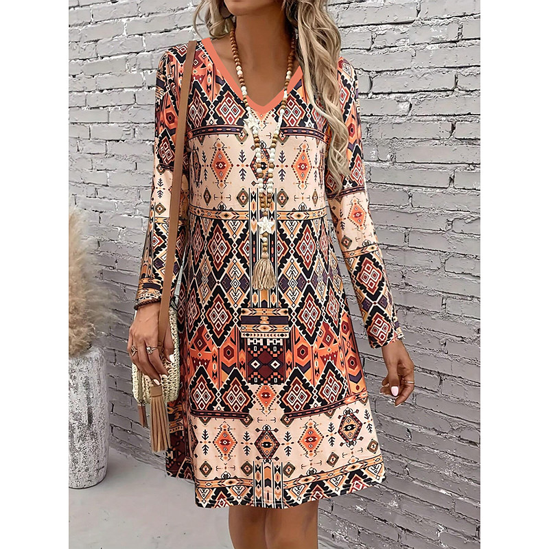 Women's Mini Dress Casual Dress Sundress A Line Dress Stylish Casual Regular Fit Graphic Geometric Long Sleeve V Neck Ice Blue Yellow Wine Dusty Blue Spring Fall