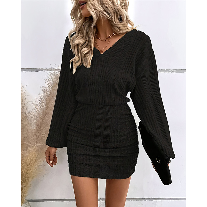 Women's Mini Dress Knit Dress Casual Dress Bodycon Fashion Modern Batwing Sleeve Daily Weekend Regular Fit Plain Long Sleeve V Neck Black Khaki Summer Spring Fall