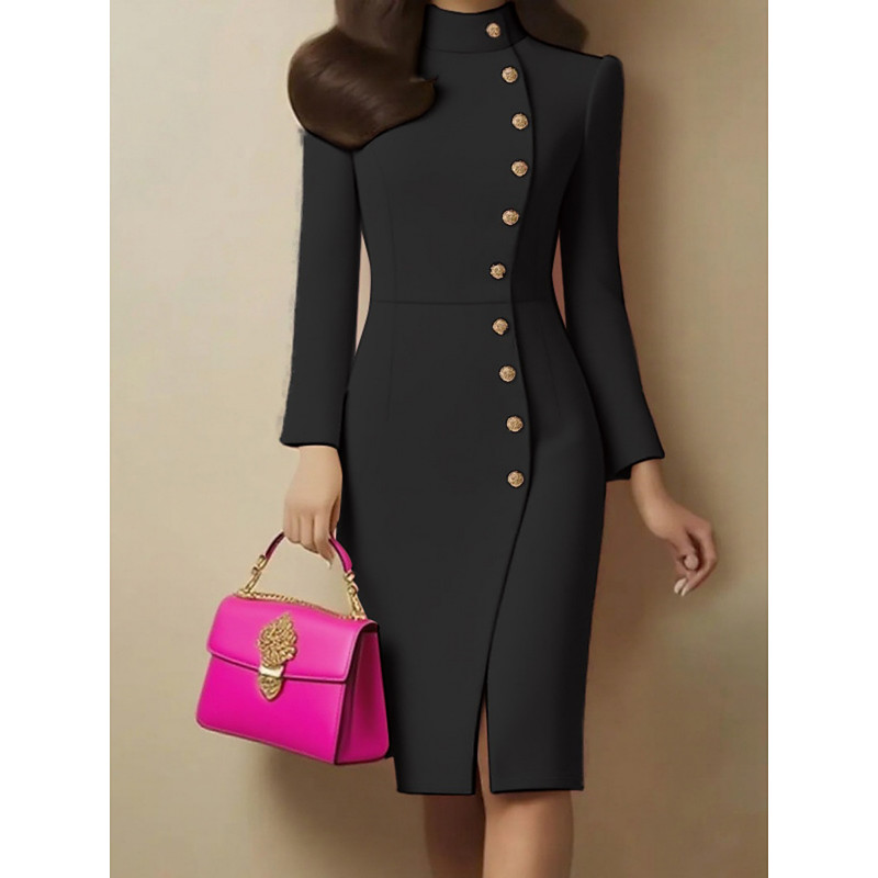 Women's Mini Dress Bodycon Dress Work Dresses Semi Formal Office Regular Fit Plain Long Sleeve High Neck Black White Pink Spring Fall Winter