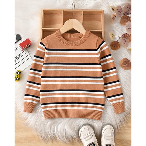Kinder Mädchen Pullover Gestreift Outdoor Langarm Rundhalsausschnitt Mode 4-12 Jahre Herbst Marineblau Beige