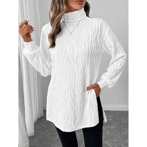 Per donna Felpa Maglione Moda Tinta unica A Coste Girocollo Lavorato a maglia Manica Lunga Top Regolari Maglia All'aperto Ferie Uscire Nero Bianco Autunno