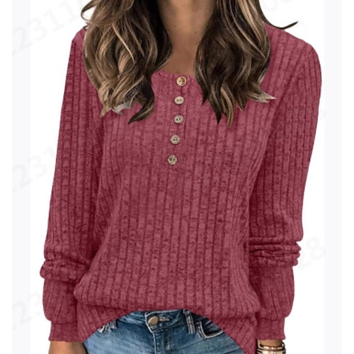 Per donna Blusa Tinta unica Elegante Casual Manica Lunga Girocollo Top Regolari Quotidiano Bottoni Blu Nero Giallo Verde chiaro Rosso Primavera Autunno Inverno