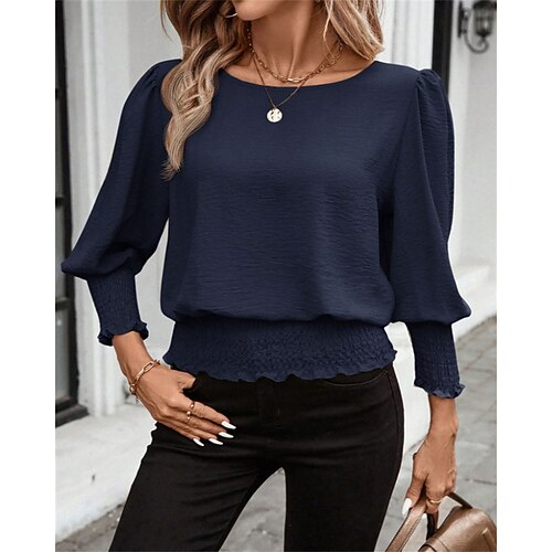 Per donna Blusa Top Eleganti Tinta unica Semplice Elegante Vintage Signore Manica Lunga Girocollo Top Regolari Quotidiano Lavoro Uscire Arricciato Patchwork Blu Nero Bianco Rosa Oro Estate Primavera