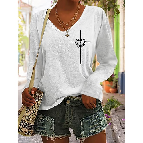 San Valentino Per donna Maglietta Cuore Grafico Vintage Elegante Classico Manica Lunga Scollo a V Top Regolari Quotidiano Stampato Blu Nero Bianco Primavera Autunno