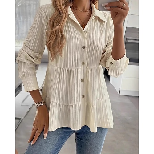 Per donna Camicia Blusa Semplice Casual Manica Lunga Colletto a Camicia Top Regolari Quotidiano Ferie Arricciato Bottoni Nero Rosso Blu marino Verde Beige Estate