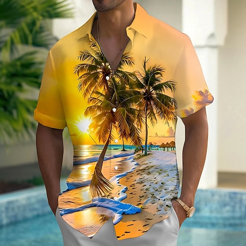 Per uomo Albero di cocco Piante tropicali Camicia Camicia hawaiana Camicia Aloha Manica corta Camicia Collo ripiegabile Di tendenza Originale Informale Esterno Strada Informale Giallo Chiaro Giallo