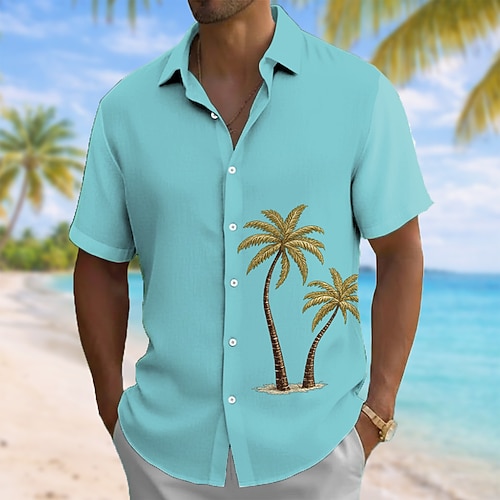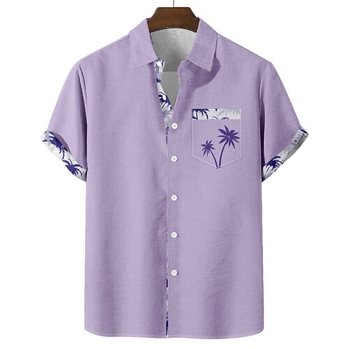 Per uomo Palma di Cocco Camicia casual Camicia hawaiana estiva Camicia Aloha Manica Corta Hawaiano Resort Casual Casuale Estate Primavera Collo ripiegato Cardigan con Bottoni Rosa Blu Verde Grigio