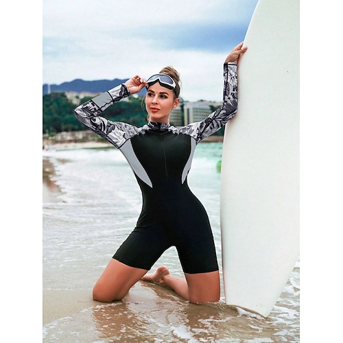 Per donna Top sottomuta Costume da bagno One Piece Stampato Protezione UV Elastico Manica Lunga Costume da Bagno Con zip Surf Spiaggia Nuoto Estate