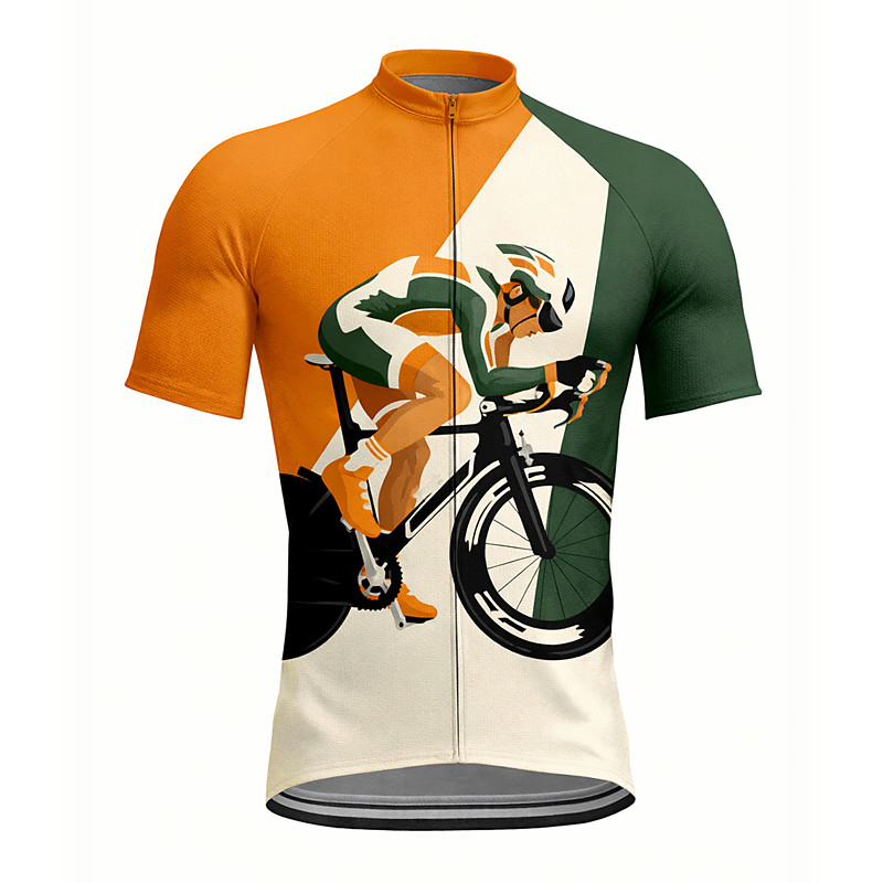 Men's Cycling Jersey Graphic Color Block Short Sleeve Bike Jersey Top with 3 Rear Pockets Sunscreen UV Resistant Quick Dry Reflective Strips Sports Blue Orange Green Clothing Apparel