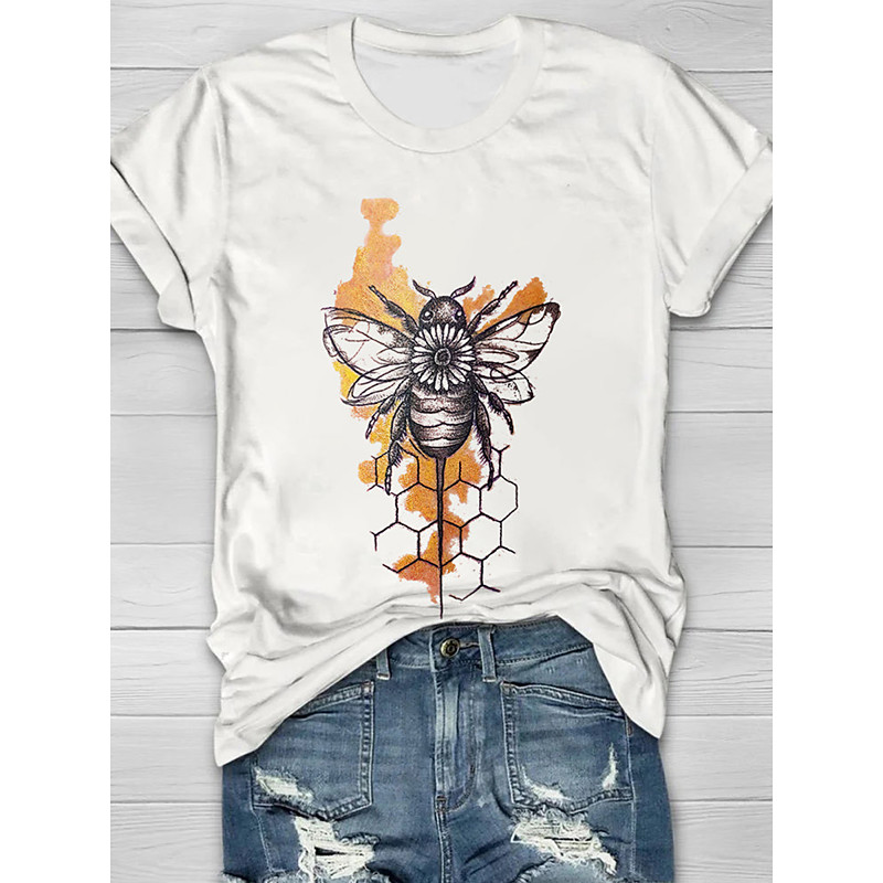 Women's T Shirt Graphic Animal Vintage Stylish Classic Short Sleeve Crew Neck Regular Tops Daily Weekend Print Sage Green White Pink Dusty Rose Orange Summer