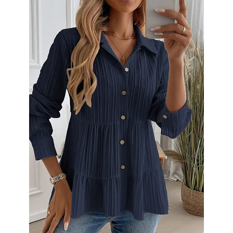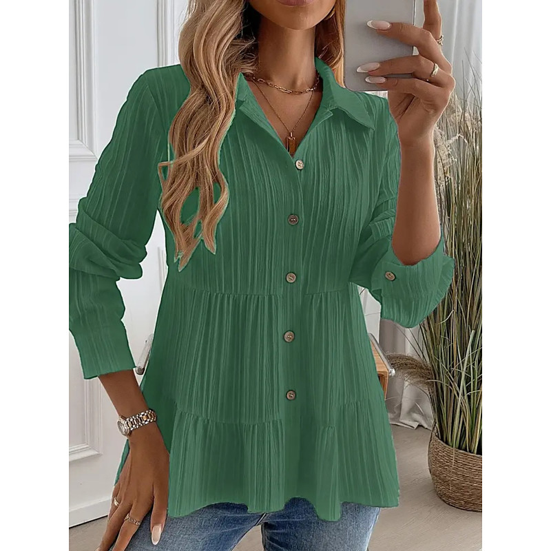 Women's Blouse Solid Color Stylish Casual Long Sleeve Shirt Collar Regular Tops Daily Ruched Buttons Sage Green Black Red Navy Blue Apricot Spring Fall Winter