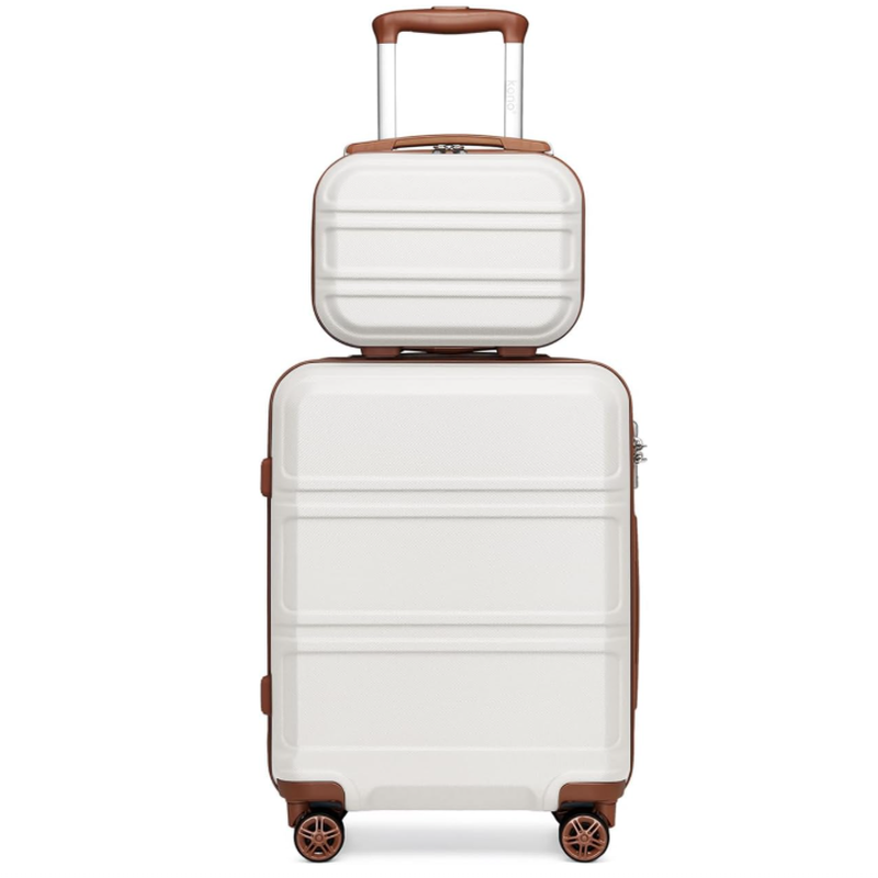 Kono Luggage Sets of 2 Piece Lightweight 20 inch ABS Hard Shell Travel Carry on Suitcase with TSA Lock + 12 inch Portable Hand Cabin Case (Cream White)
