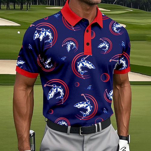 Per uomo Squalo Golf Polo Sportivi Manica Corta Magliette polo Camicie con Colletto Casual Athleisure Bottoni Primavera Estate Blu