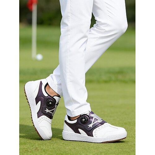 scarpe da golf da uomo, in similpelle bianca con dettagli rossi, chiusura regolabile con boa, comode e resistenti, ideali per campi da golf, sport all'aria aperta e attività ricreative