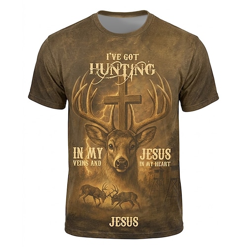 Per uomo Croce Cristiano Caccia Maglietta Manica Corta maglietta Stampa 3D Girocollo Camicia Sport Religioso Athleisure Casuale Sport all'Aperto Nero 1 Marrone Nero 2 Estate Primavera Abbigliamento S