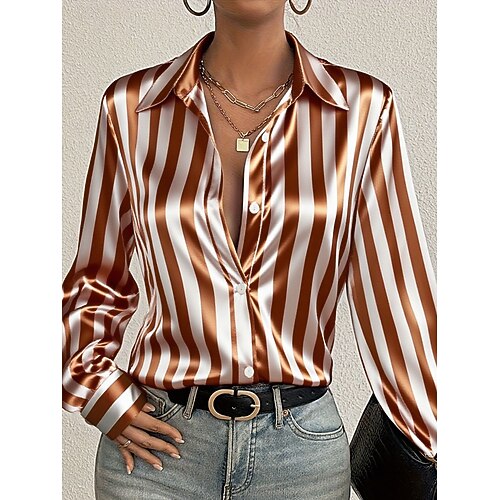 Damenhemd Schicke Tops Formelle Arbeitsbluse Grafik Gestreift Elegant Stilvoll Lässig Lange Ärmel Kragen Reguläre Tops Arbeit Täglich Schwarz Rot Braun Frühling Herbst Winter