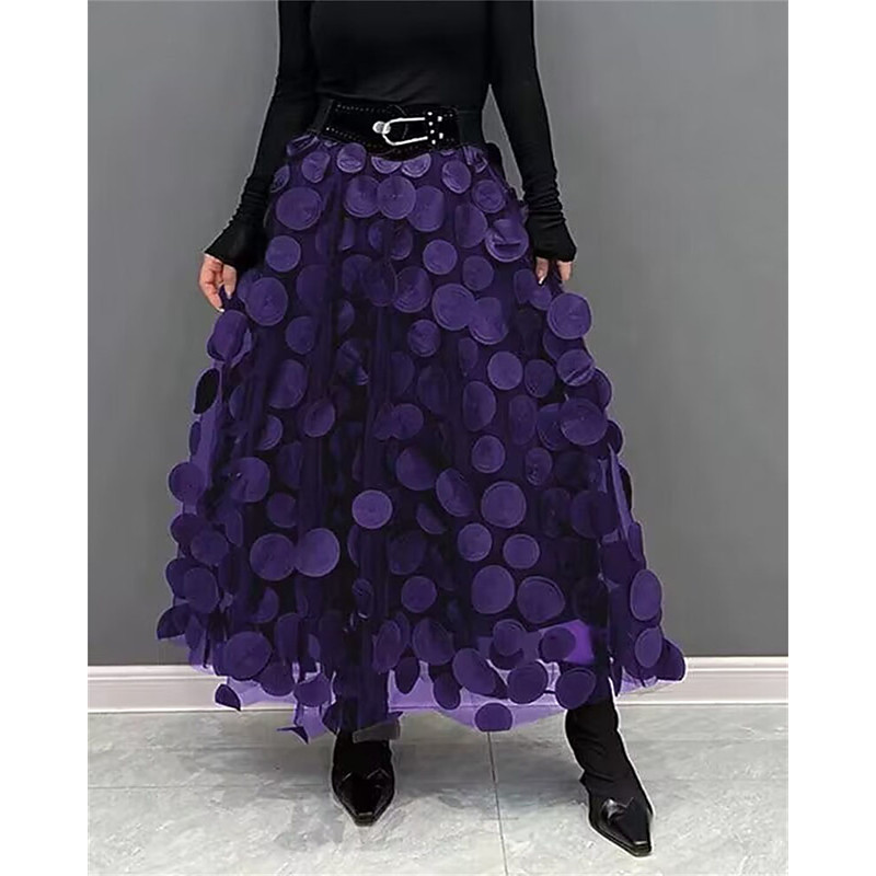Women's Skirt A Line Swing Tutu Elegant Vintage Fashion Midi Mid Waist Skirts Polka Dot Plain Patchwork Flower Layered Inelastic Street Causal Amethyst Apricot Black Red Fall Cotton Tulle