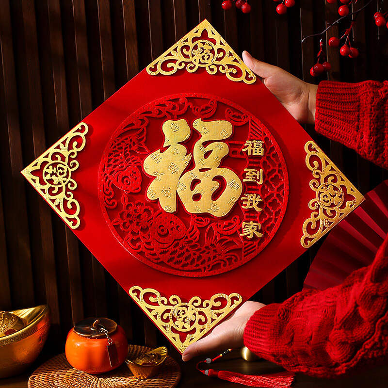1pc 3D Velvet "Fu" Decal Sticker for Chinese New Year 2026, Year of the Horse Spring Festival Home Decor - 13.7 Inch Self-Adhesive Door Window Cabinet Decoration (Fu Dao Wo Jia)