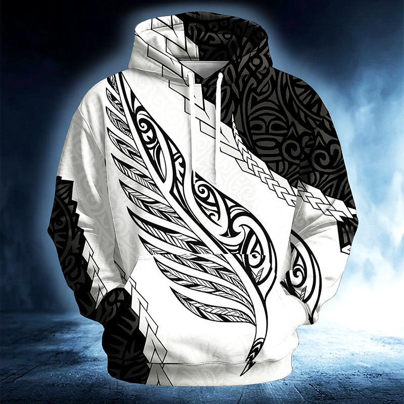 Men's Tribal Hoodie Sweatshirt Ethnic Vintage Retro Long Sleeve Crew Neck Outdoor Streetwear Black White Drawstring Fall Winter Designer S M L XL XXL XXXL