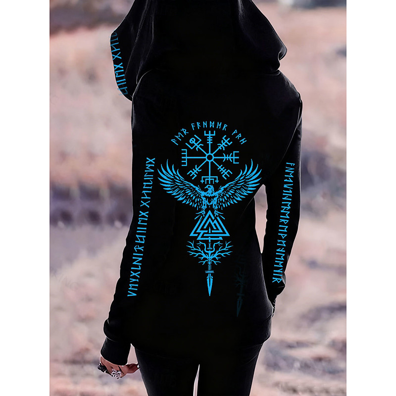 Women's Zip Up Hoodies Graphic Tribal Fashion Casual Long Sleeve Hooded Regular Tops Street Dailywear Zipper Pocket Print Blue White Red Spring Fall