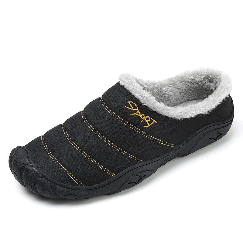 Men's Black Quilted Slip-on Shoes with Fleece Lining - Cozy Footwear for Cold Weather, Relaxing at Home and Casual Wear