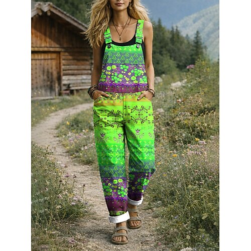 Per donna Salopette Attivo Floreale Senza Maniche Senza maniche Harem Tasca Bottoni Vacanza Streetwear Vestibilità comoda Bianco Giallo Verde chiaro Estate