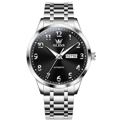 il nuovo orologio da uomo olevs in acciaio inossidabile con calendario luminoso e indicazione del giorno, orologio meccanico automatico multifunzionale impermeabile, casual e semplice, orologio da