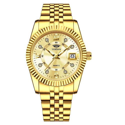 The New Golden Shield Fashionable And Trendy Women'S Watch Is An Imported Machine With A Diamond-Encrusted Calendar A Retro Thin Model With A Small Dial Waterproof Casual And Sporty Women'S Busines