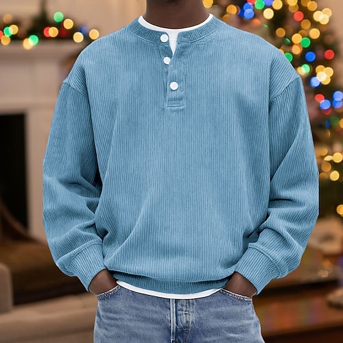 Per uomo Camicia di Velluto a Coste Maglia Henley Maglietta Manica Lunga Tinta unica Semplice Moda Designer Casual Cardigan con Bottoni Caldo Henley Casuale Quotidiano All'aperto Autunno Inverno