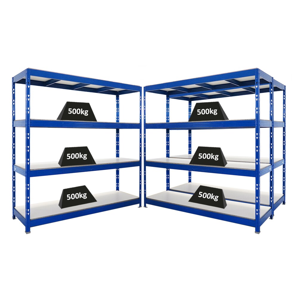 Proregal Mega Deal | 2x Profi Schwerlastregal Rhino | HxBxT 200x200x60cm | 4 Melamin-Ebenen 16mm | Fachlast 500kg | Blau