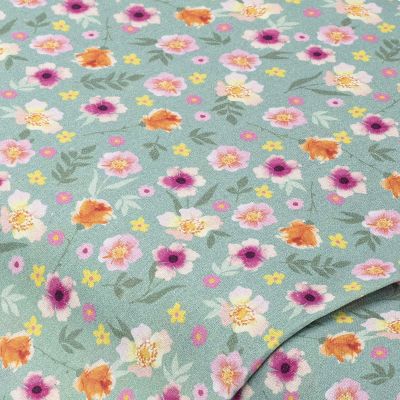 Tissu coton "magie des fleurs", eucalyptus/coloré, série "Sina"