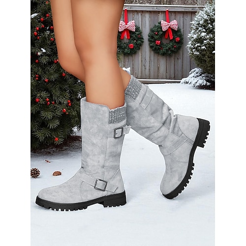 stivali da donna in finta pelle scamosciata rossa a metà polpaccio con fibbie regolabili e suola antiscivolo, stivali casual in maglia comodi per Natale abbigliamento quotidiano