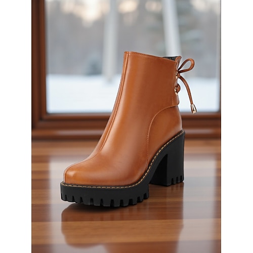 Per donna Stivali Stivali con plateau Lavoro Quotidiano Tronchetti Cerniera Lacci Plateau Tacco a Blocco Punta Tonda Affari Comfort Camminata Finta Pelle Cerniera Nero Bianco Marrone
