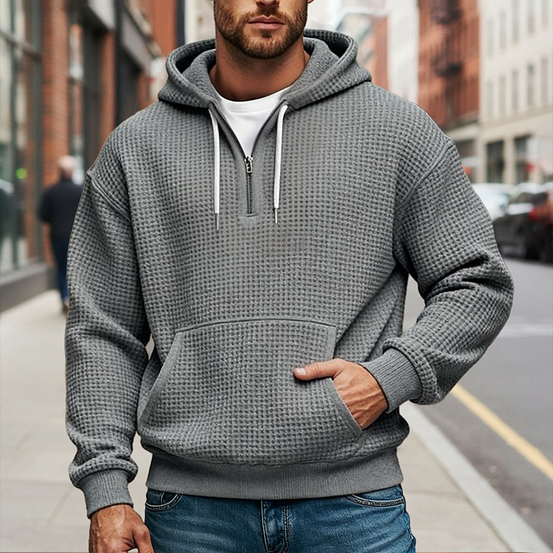 Men's Hoodie Waffle Hoodies Quarter Zip Hoodie Army Green Red Navy Blue Light Grey Dark Gray Hooded Plain Kangaroo Pocket Textured Sports Outdoor Casual Daily non-printing Streetwear Cool Sportswear